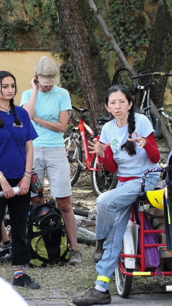 He visto mujeres que se van a dar la vuelta alrededor del mundo, ellas solas en bicicleta. Que son capaces de reparar su bicicleta, que son capaces de ir en bici así llueva, haga sol o relampaguee. Con sus hijos, con bebés, embarazadas. Entonces, realmente no tenemos límites. Los límites nos los han enseñado. Nos han enseñado a sentir miedo y a sentirnos incapaces. Pero nos corresponde a nosotras conquistar la libertad de andar en bicicleta, de adueñarnos de la ciudad, de ser capaces de ir a donde nosotras queremos ir, como nosotras queremos ir.