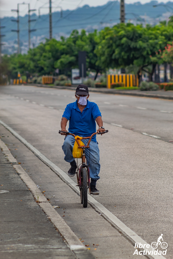 Muchos en Guayaquil siguen por optar por moverse en bicicleta para ir a comprar víveres, medicina o ir al trabajo. La bicicleta sigue siendo un transporte eficiente y versátil, hasta en situaciones de emergencia sigue siendo la opción de menor contacto y más amigable con el ambiente.