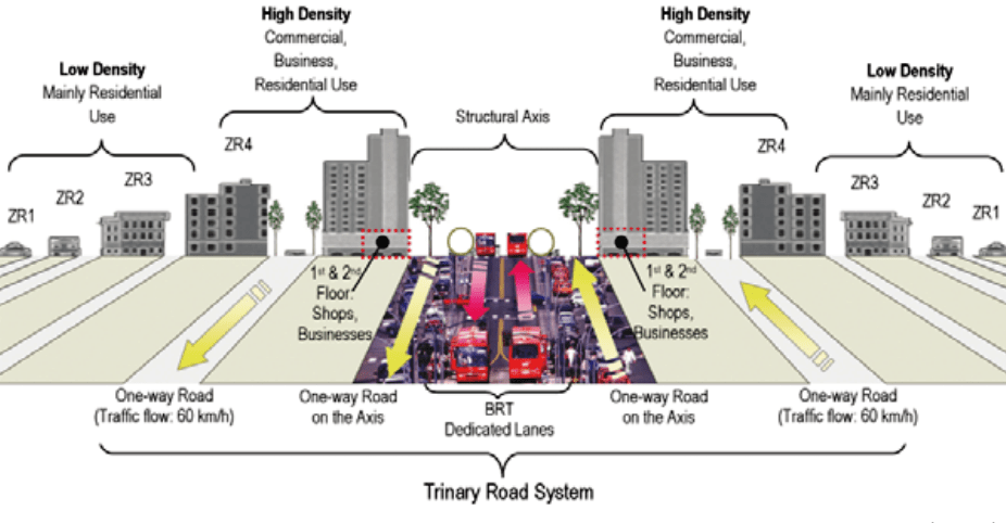 En los años 60 la ciudad de Curitiba en Brasil se veía amenazada por su expansión demográfica, el alcalde de ese entonces Ivo Arzua encargó a la Universidad Estatal del Paraná el Plan Maestro de Urbanismo donde un joven arquitecto, Jaime Lerner, lideraría el equipo técnico. En aquel tiempo, el común modelo de planificación urbana enfocaba la concentración de negocios y servicios en el centro de la ciudad mientras las áreas residenciales se alejaban del centro, la movilización no era un asunto de importancia puesto que el auto era el sinónimo de éxito y libertad, habían buses de transporte y la contaminación atmosférica no era algo de interés, mucho menos el uso de energía.