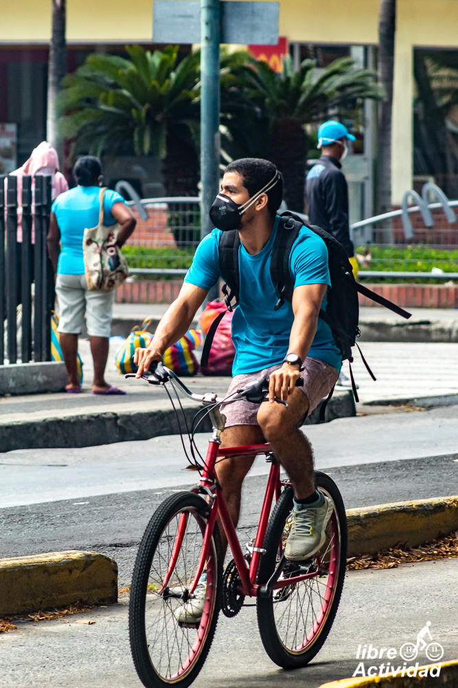 - Antes de usar la bicicleta debemos colocarnos una mascarilla grado médico (de cirujano). No es recomendable el uso de mascarillas fabricadas en casa, puesto que el algodón y otras fibras permiten el paso de microgotas y generan una falsa sensación de seguridad.