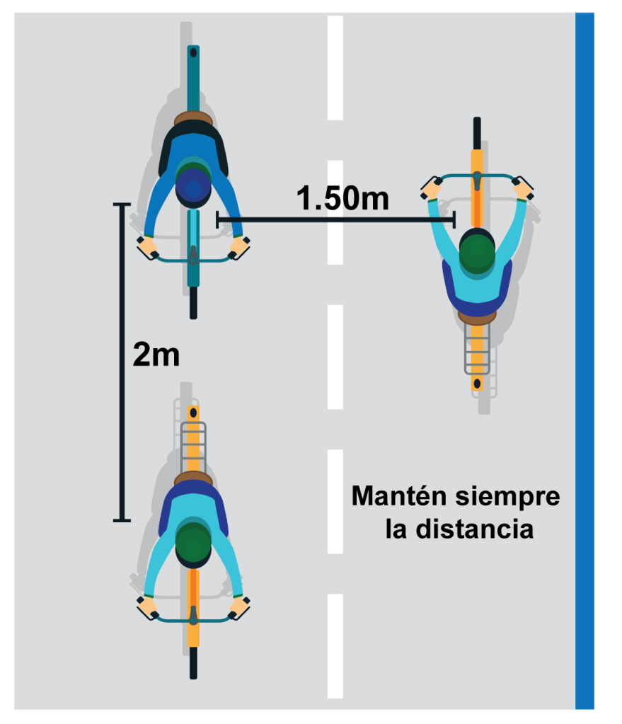 Mantén una distancia prudente con otros ciclistas porque en la emisión de micropartículas al respirar y al pedalear existe riesgo de contagio