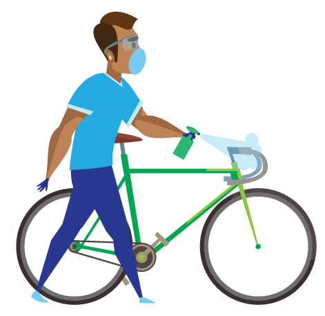 Desinfecta la bici con alcohol antes y después de los recorridos (luego limpia con un paño para evitar que oxide las piezas). Lo más efectivo es lavarla con agua y jabón