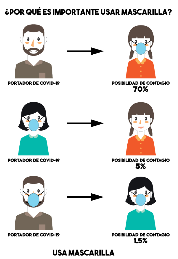 • Puede ser algo incómodo y acostumbrarse te tomará un tiempo, pero esto es indispensable para prevenir contagios, sea que estés en bicicleta, en scooter, caminando o en transporte público, mira el gráfico a continuación para que lo tengas muy en cuenta: