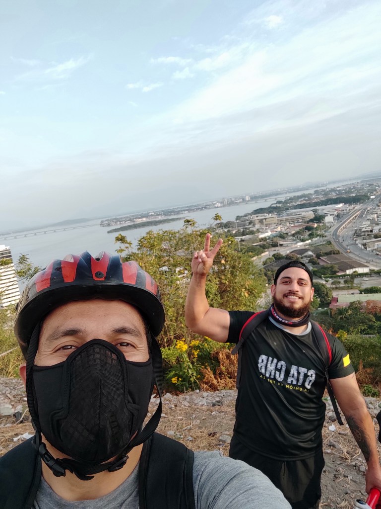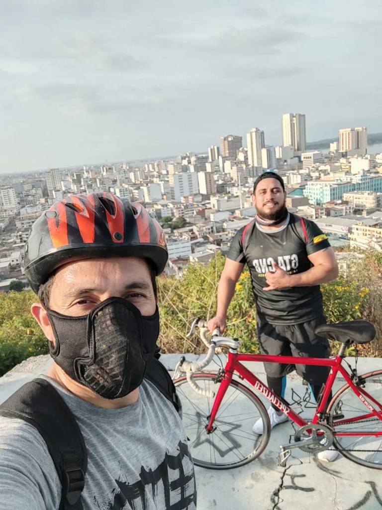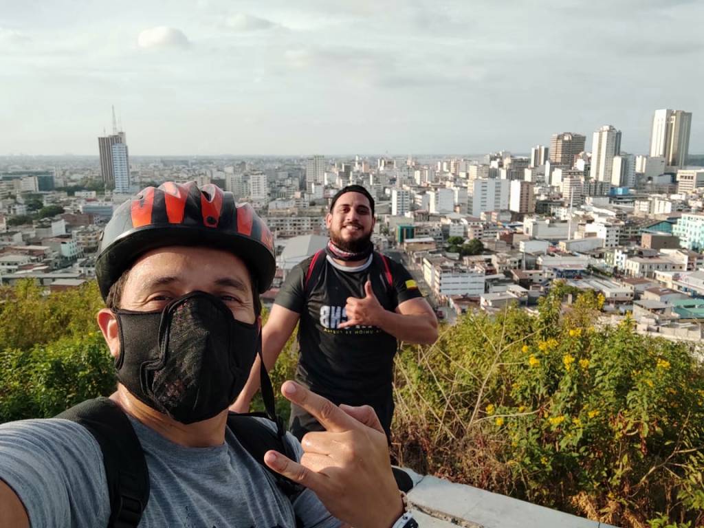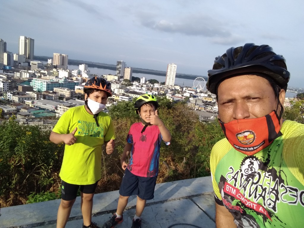 La hermosa vista de Guayaquil que se aprecia desde este sector, fue aprovechada por familias y amigos para fotografiarse y recordar cómo la bici y los patines pueden llevarnos por todo lo alto, sin contaminar ni congestionar y aportando a nuestra salud y economía.