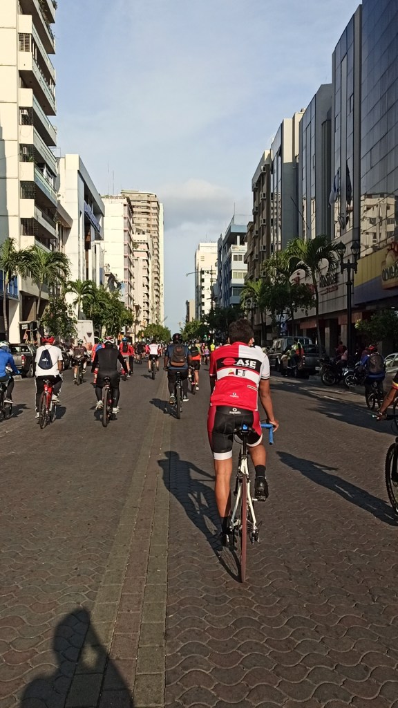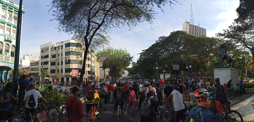 Como ya se ha vuelto costumbre en este año, nos concentramos en tres puntos de la ciudad: norte, sur y suburbio. Desde ahí salimos para encontrarnos en Urdesa, avanzar al centro y llegar al cerro del Carmen. Agradecemos que se mantenga el orden y la velocidad moderada, sobre todo por aquellas personas que nos acompañan por primera vez y aún les cuesta un poco mantener el ritmo.