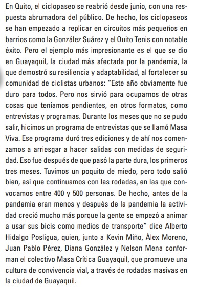 El ejemplo más impresionante es el que se dio en Guayaquil, la ciudad más afectada por la pandemia, la que demostró su resiliencia y adaptabilidad, al fortalecer su comunidad de ciclistas urbanos: