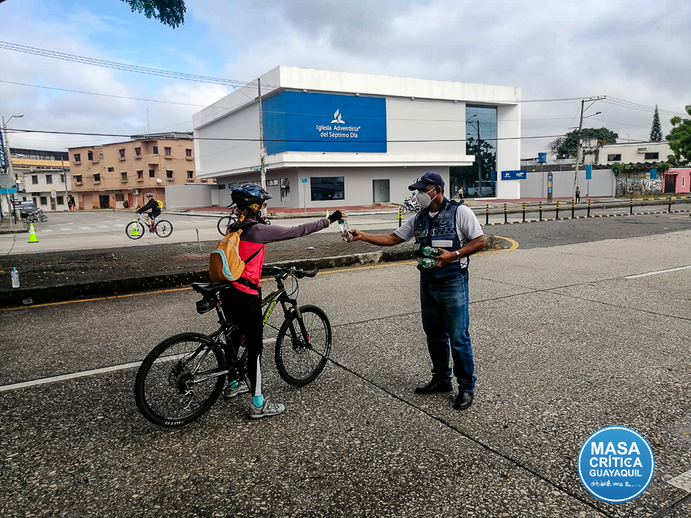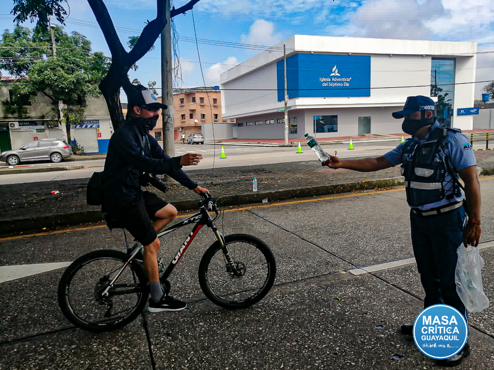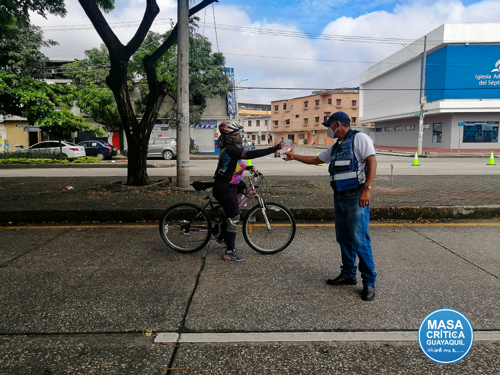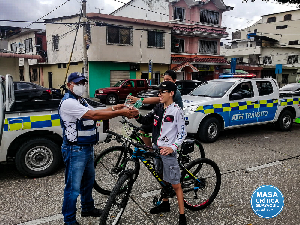 Esta actividad, que se realiza desde 2020 y que se prevé sea periódica y se extienda a otros espacios de la ciudad, fue autorizada por el Comité de Operaciones de Emergencia (COE) y supervisada por la Agencia de Tránsito y Movilidad (ATM), que entregó botellas de agua, donadas por Aqua.