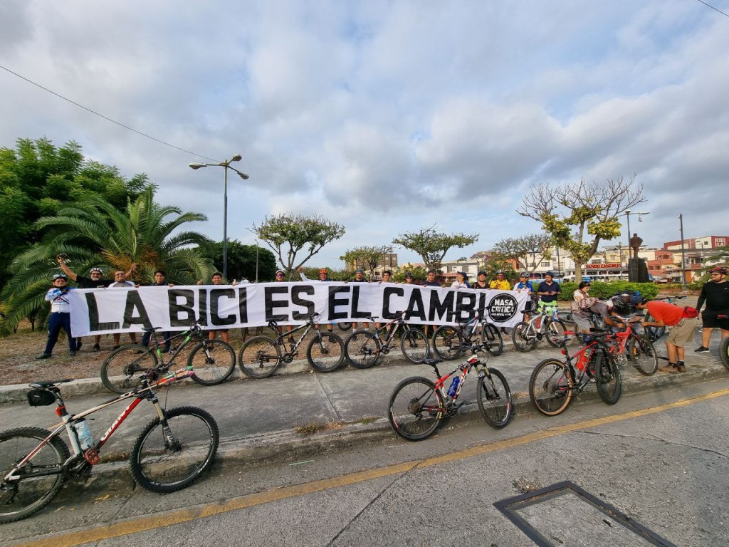 Ese mensaje lo exhibimos al pie del Municipio de Guayaquil, justo donde está un tramo de ciclovía que es irrespetado a diario, incluso por vehículos motorizados del sector público. Lo haremos las veces que sean necesarias hasta que se generen políticas públicas a favor del uso de la bicicleta y vehículos de micromovilidad.