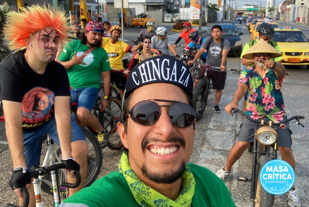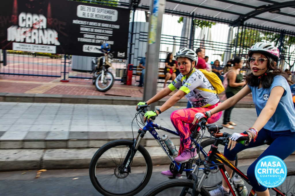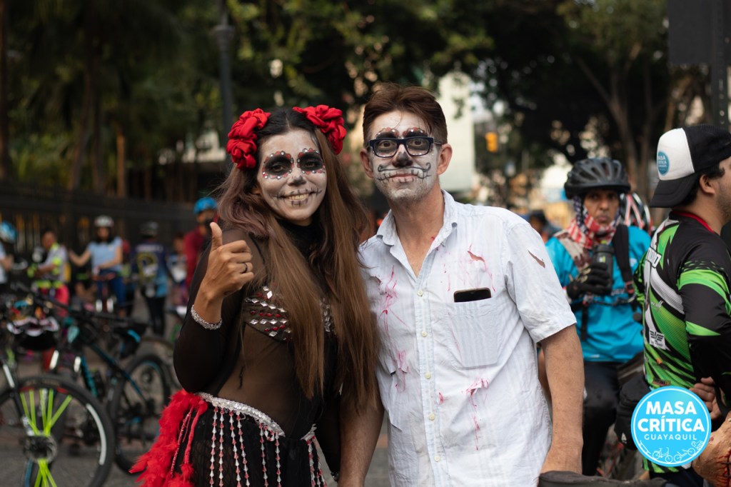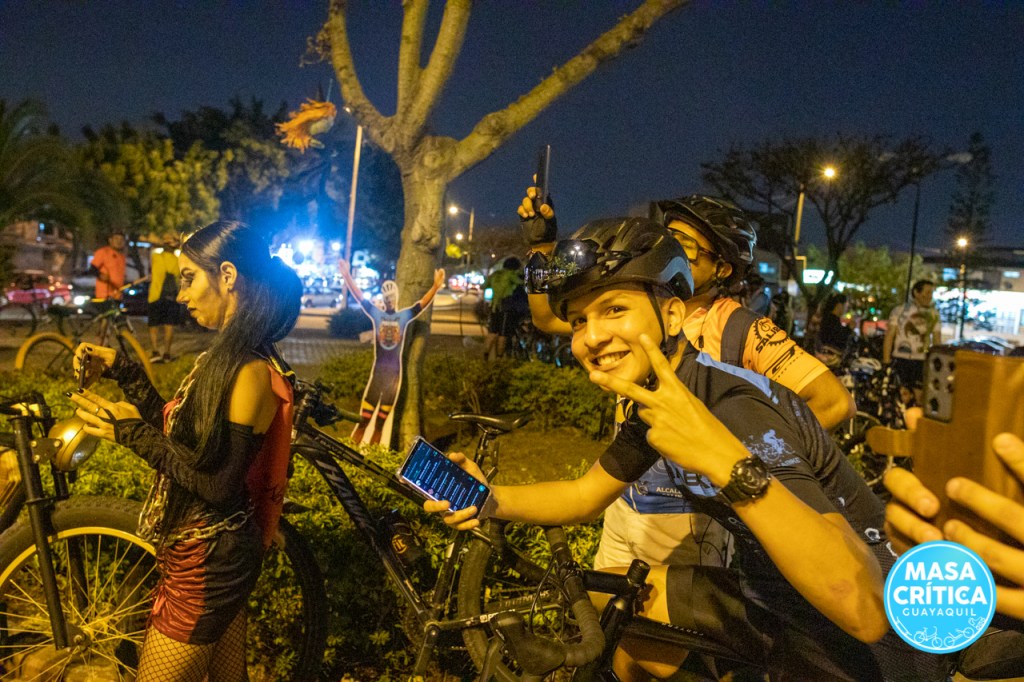 Masa Crítica Guayaquil celebró el pasado 29 de octubre la fiesta de Halloween con una rodada que nos llevó por calles del centro y sur de la ciudad. Contamos con al menos un centenar de biciusuarias/os.