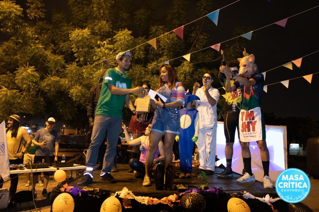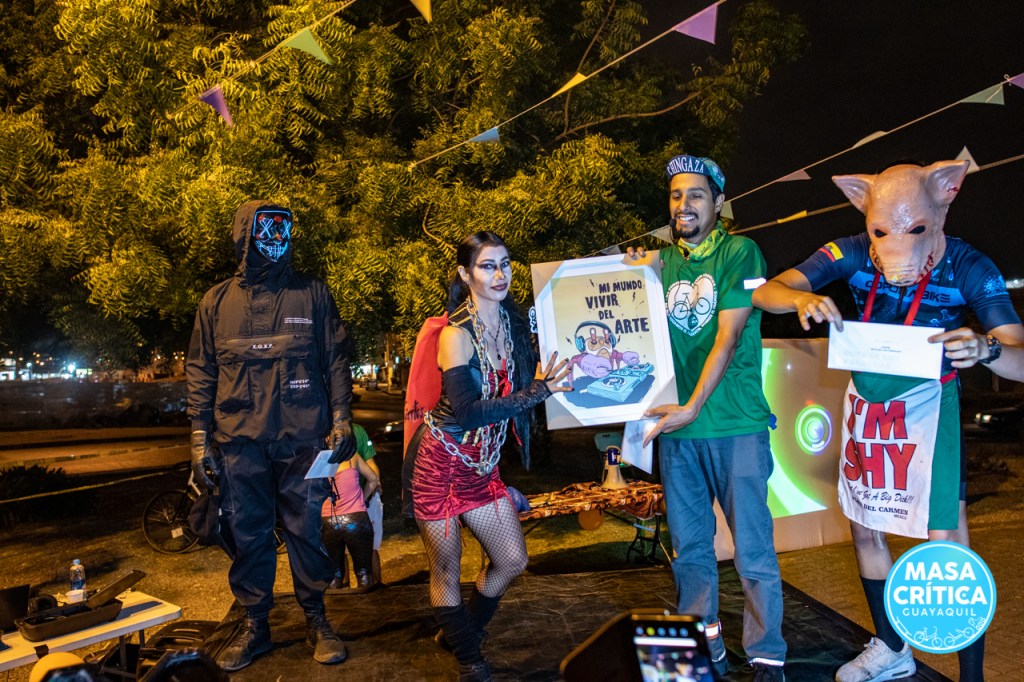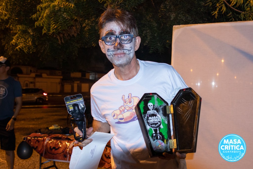 La creatividad y sobre todo el ánimo de quienes se disfrazaron se mostró en la premiación que tuvimos en el redondel de Isidro Ayora y Enrique de Grau. Agradecemos a quienes nos apoyaron con los premios: el muralista Gabo Peña Zapatier, Guayaquil Bike Tours, Urban Bike, Todo Pedal, Sucre Bikes y Mr. Morocho.