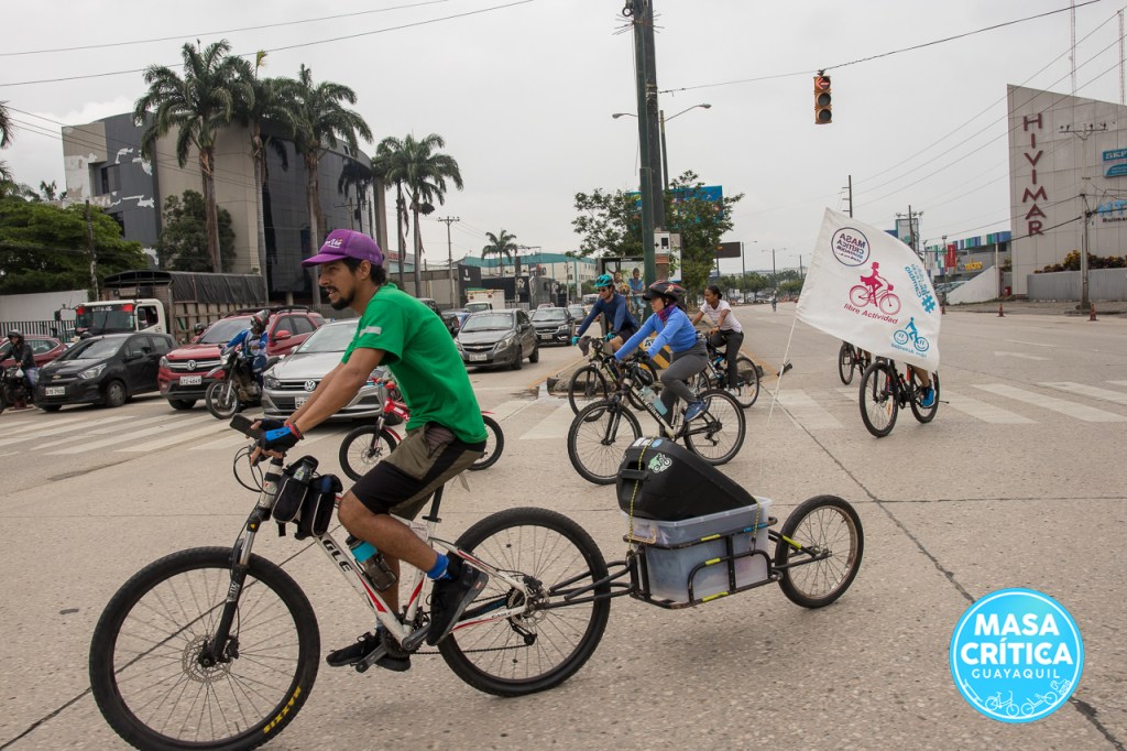 Masa Crítica Guayaquil participó el pasado domingo en la denominada Rodada por la Paz, organizada por la Agencia de Tránsito y Movilidad (ATM), para exigir seguridad ciudadana y rechazar la violencia vial.