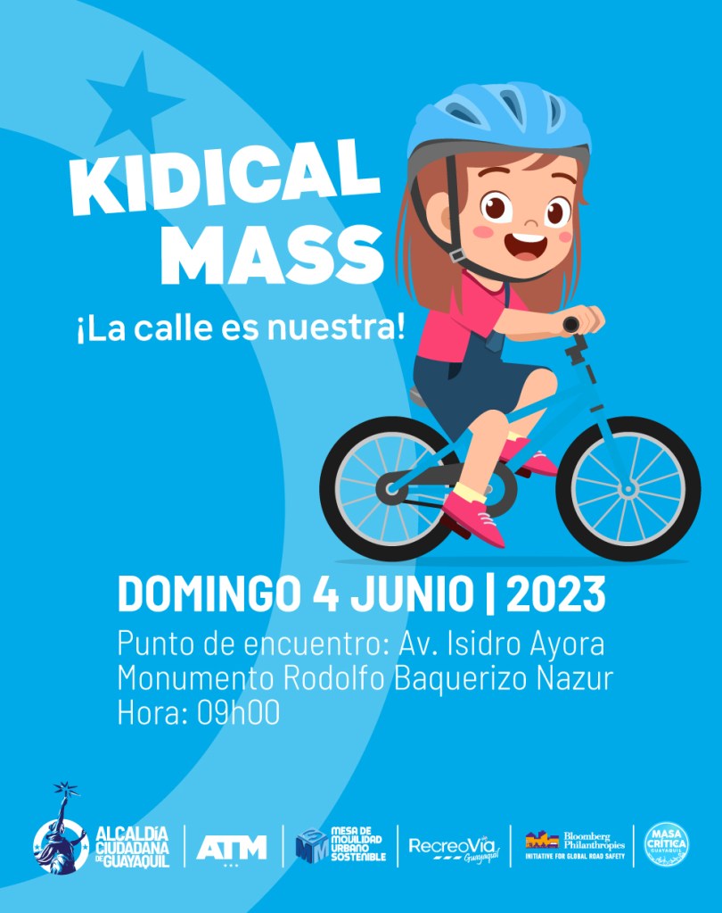 La Kidical Mass formará parte de las actividades gratuitas por la Recreovía de este domingo 4 de junio, en el norte de Guayaquil. Te esperamos a las 09:00 en el Monumento Rodolfo Baquerizo Nazur en la Av. Isidro Ayora diagonal a La Española Alborada.