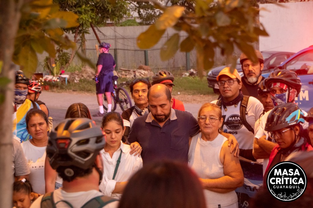 El ambiente fue de nostalgia y unidad la tarde y noche de este domingo 30 de julio, al colocar la bicicleta blanca en el lugar donde el pasado Día del Padre fueron asesinados los biciusuarios Bosquito de Jesús Mora y sus nietos Bosco y Vinicio Mora Loor.
