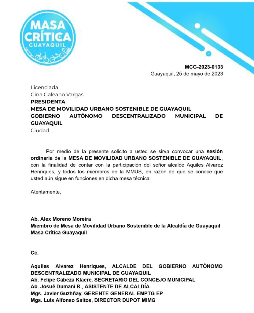 - Te recomendamos: Qué es la Mesa de Movilidad en Guayaquil y cuál es el rol que cumplen ahí los integrantes de Masa Crítica
