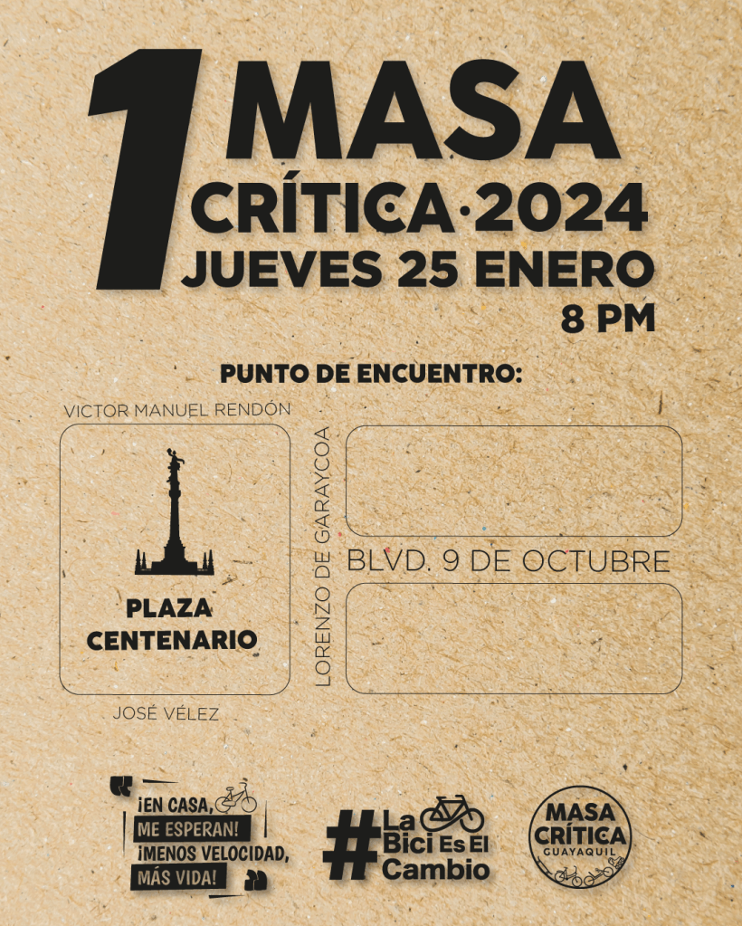 Vamos a concentrar desde las 20:00 en la Plaza del Centenario (9 de Octubre y Lorenzo de Garaycoa), centro de Guayaquil. Recuerda traer tu bici o patines en buen estado y muchas ganas de divertirte.