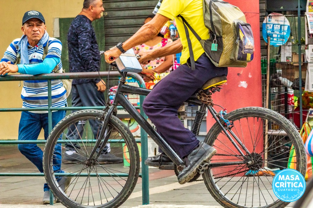 Captamos postales de biciusuarios movilizándose en bicicleta por calles del centro de Guayaquil. Nuestro vehículo favorito sirve como medio de transporte para trabajar y otras tareas.