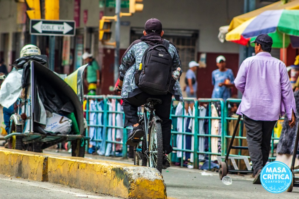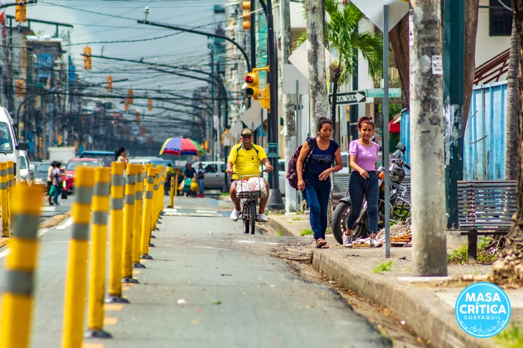 Salimos a capturar esta realidad, beneficiosa para nuestras ciudades, en el centro de la urbe. Confirmamos que se utiliza la ciclovía, pese a que la actual administración del Municipio de Guayaquil no ha invertido en mantenimiento, mejoras y ampliación.