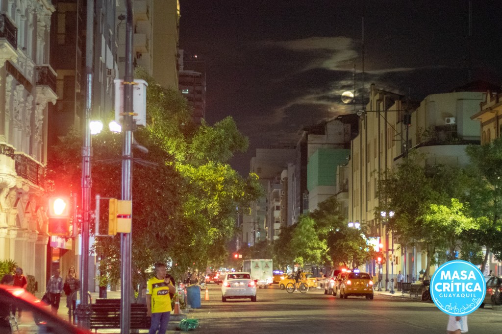 Con la hermosa postal de la Luna llena, conocida como Luna Rosa, recorrimos calles del centro y norte de Guayaquil en nuestra Masa Crítica del 25 de abril.