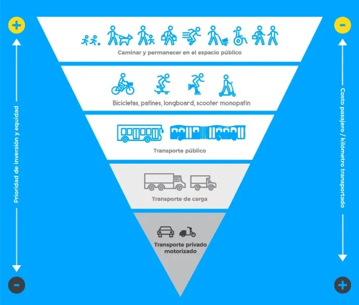 - Luego, el transporte público y los modos activos (bicicleta, micromovilidad).
